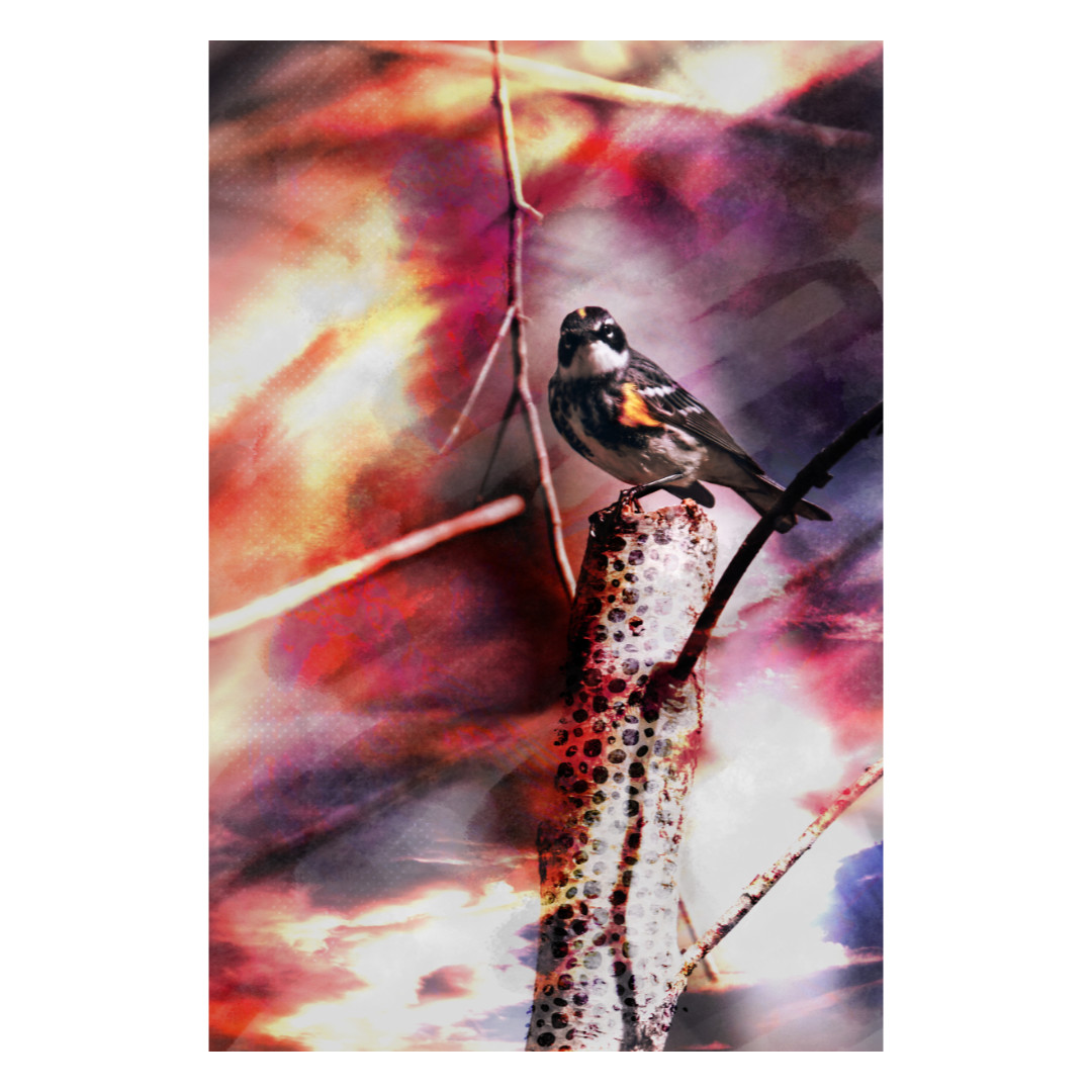 Je regardais les oiseaux le jour et j'explorais les couleurs en soirée. J'ajoutais des couleurs aux paysages du début printaniers, autrement très fades, en mélangeant diverses photographies et en y ajoutant ma touche artistique.
