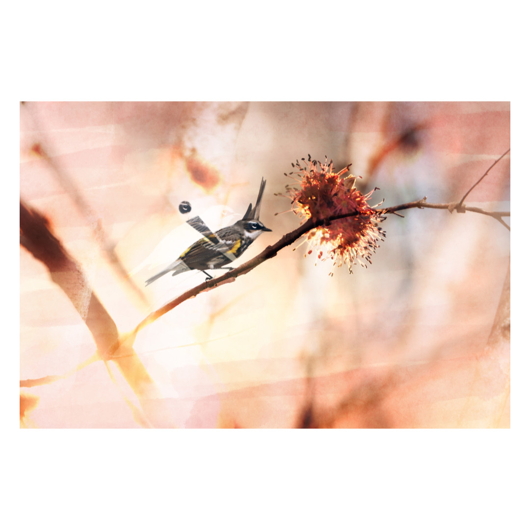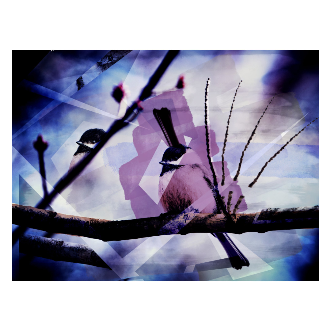 Je regardais les oiseaux le jour et j'explorais les couleurs en soirée. J'ajoutais des couleurs aux paysages du début printaniers, autrement très fades, en mélangeant diverses photographies et en y ajoutant ma touche artistique.